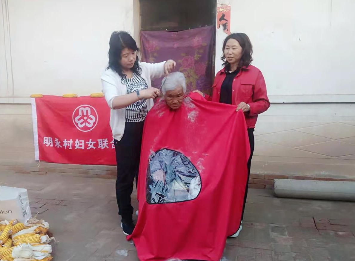 在永济村离任妇联主席蒋兰英家,妇联干部和志愿者们一同与老人包饺子,唠家常,耐心听她讲那些年的工作经历。在明永村,胡建花“为爱筑巢”志愿者服务队的队员们,细心地为每位留守老人修剪头发,一边和老人聊生活琐事,一边询问老人们的身体状况。几个小时下来,在志愿者的精心修剪下,老人们个个发型利落、精神抖擞。