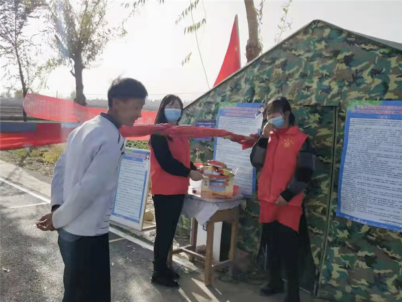 巾帼志愿者车玉香向骆驼城镇新建村捐赠了价值600元的方便面、饮用水等防疫物资,用于志愿疫情防控工作。“现在疫情形势越来越严峻,我们看着奋战在一线的工作人员很辛苦,作为一名志愿者,除了协助做好扫码测温这些工作,我更有责任和义务为疫情防控再做些什么,尽自己的一点点力量,发挥我作为巾帼志愿者的担当!”车玉香说。