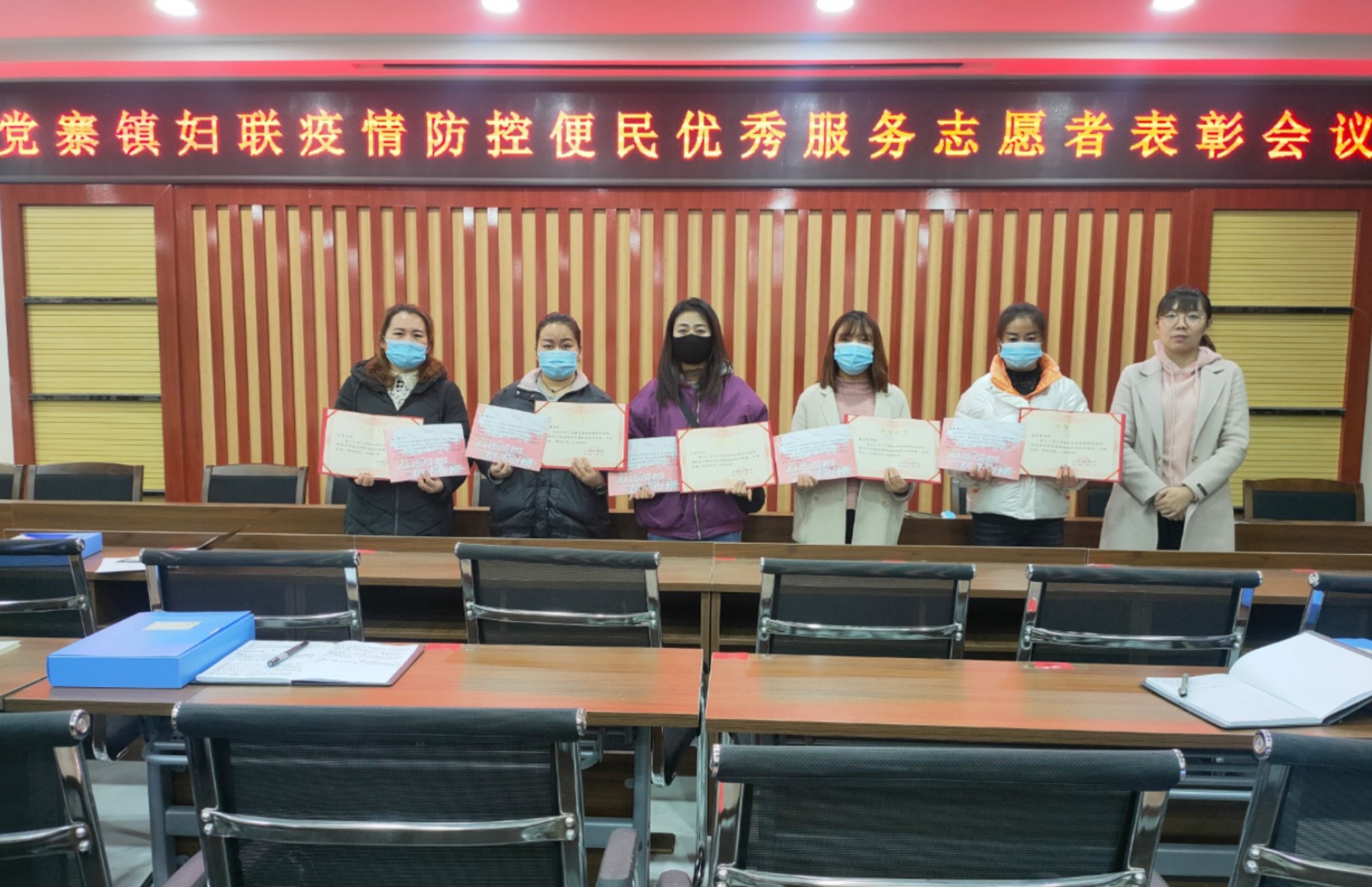 11月25日下午,党寨镇妇联召开了疫情防控优秀志愿者表彰会议,为加入疫情防控志愿工作的5名优秀巾帼志愿者颁发荣誉证书,弘扬她们不计得失、无惧风险、不辞辛苦、奋勇争先的奉献精神。她们共同感言:“其实我们所做的都是丁点小事,远远不及一线医护人员。今后我们会继续积极参加各种志愿活动,为社会贡献自己的微薄力量。”